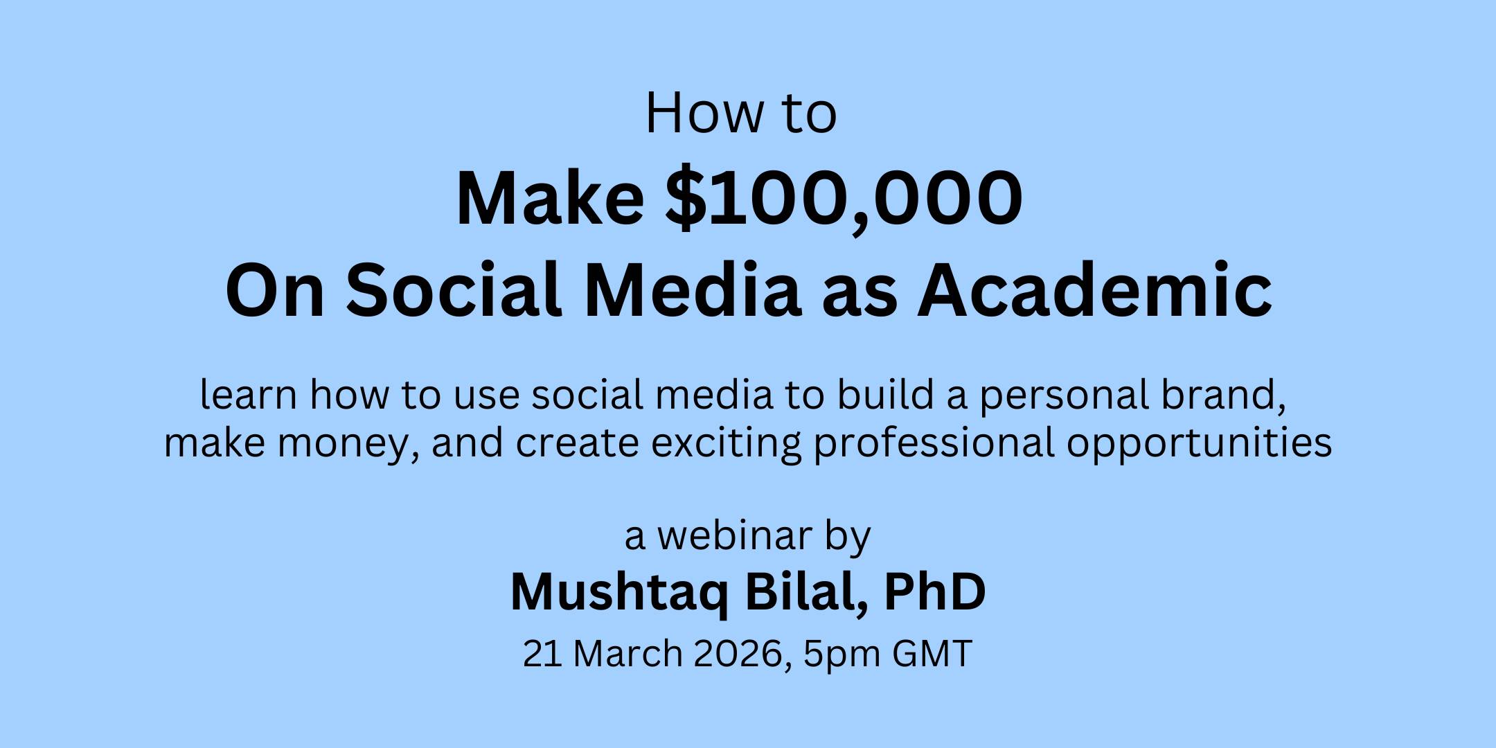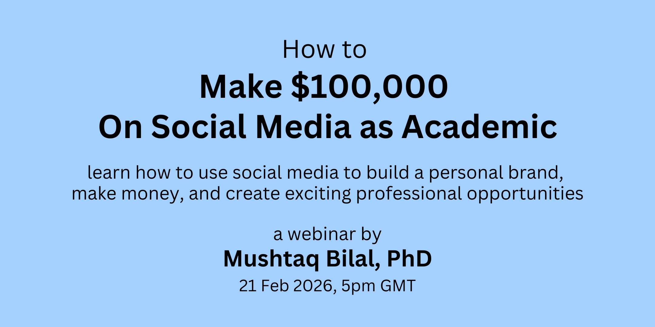How to Make $100,000 on Social Media as Academic — Webinar 21 Feb 2026 Registration for my 21 Feb webinar on How to Make $100,000 on Social Media as Academic is open. 44 colleagues attended this webinar last month. I have been writing on social media (mainly on TwitterX and LinkedIn) regularly since April 2022. This has been a life-changing experience for me. By simply writing on social media, I have made nearly half a million dollars. I have featured in leading scientific publications like...